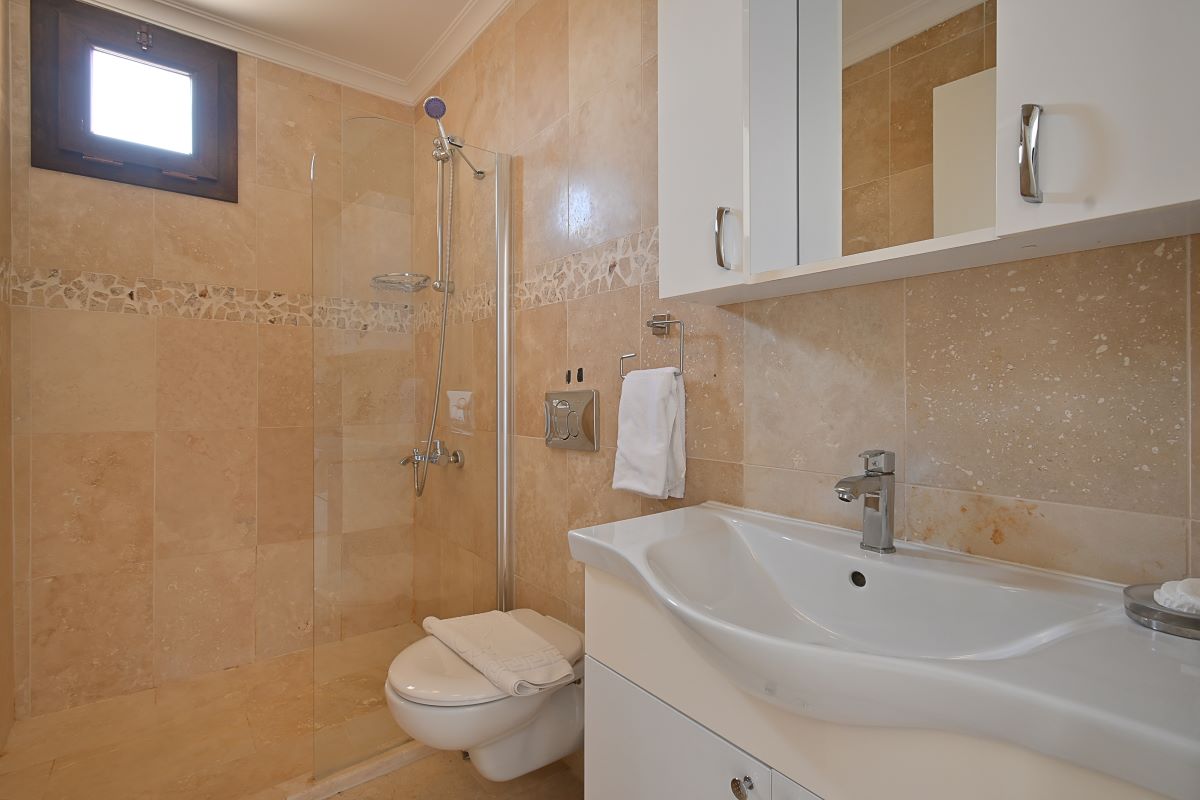 Each of the villas have 4 bedrooms (3 x doubles and 1 x twin) with en-suite shower rooms, 3 double bedrooms upstairs and 1 twin on the ground floor leading out on to the terrace, a spacious open-plan lounge and dining area, modern kitchen and a spacious terrace area with private swimming pool comfy sun loungers, and outside dining area. Villa boasts spectacular views over Kalkan’s azure bay.